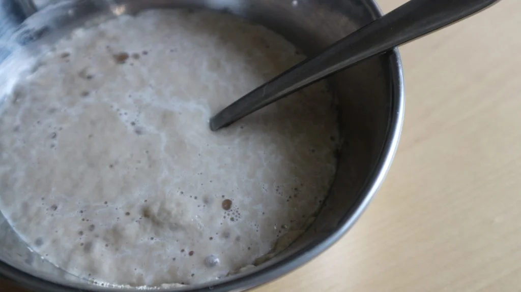 - Add the yeast, stir it, and leave it aside to dissolve for 5 mins.
