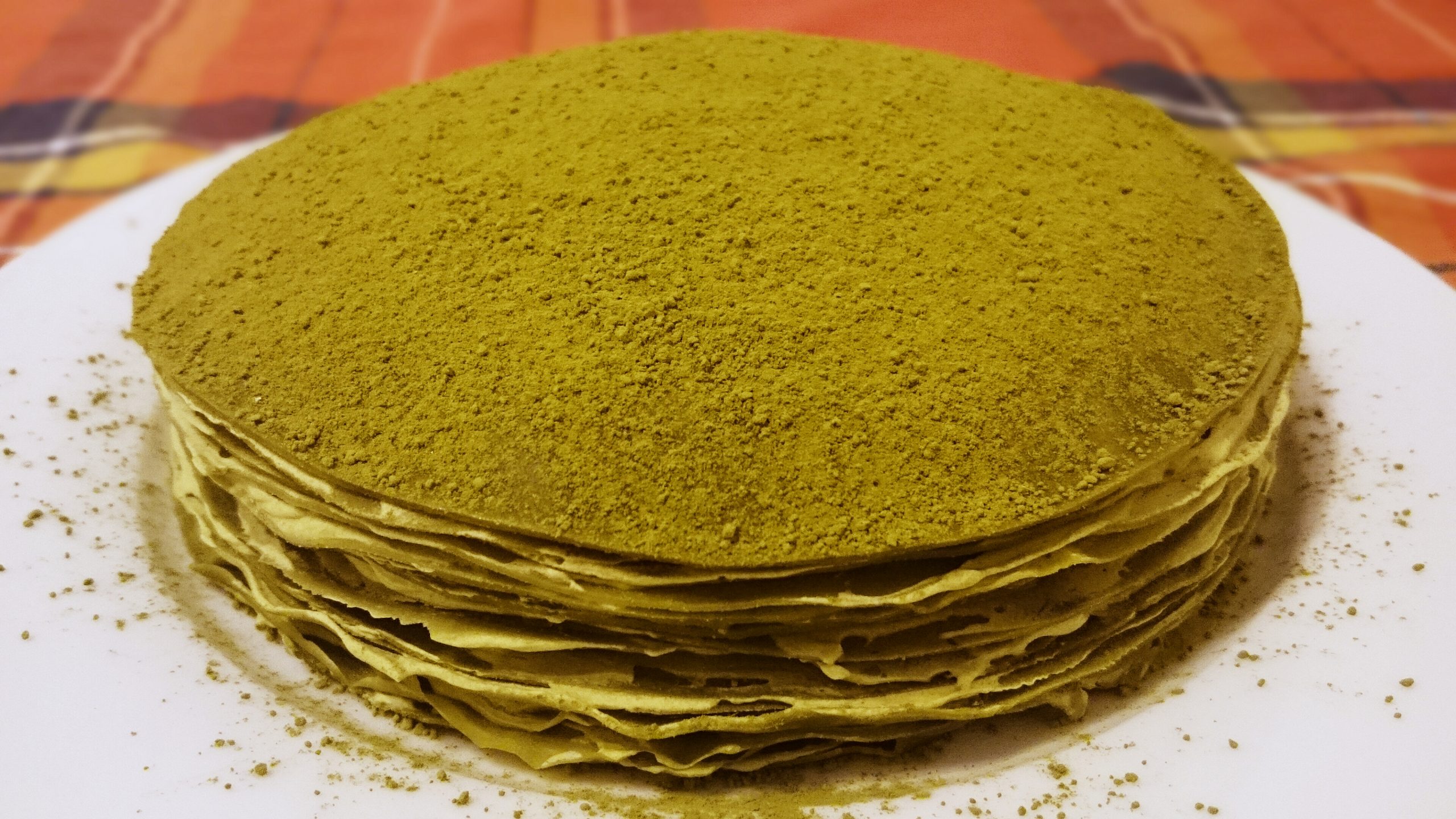 - Repeat this until you finish with all 20 layers. Try to smear the cream evenly and keep it thin for each layer. Cover and leave it in the fridge for at least 6 hours before serving. Sprinkle some matcha powder on top before serving.