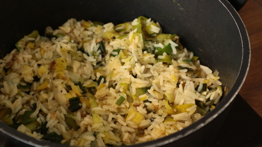 Then I find out that making Greek leek rice is super easy and simple. There are no fancy ingredients in this recipe, and little hands-on time, it’s also a vegetarian/vegan (if you use vegetable stock instead of chicken stock), diary-free, and gluten-free recipe.