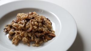 When the rice is at the right texture, close the fire. Add the Parmesan cheese and butter. Mix well to serve. Add extra Parmesan cheese on top if you like.