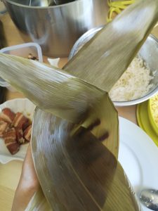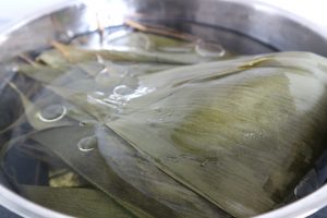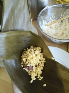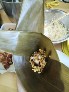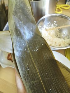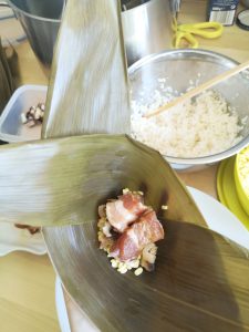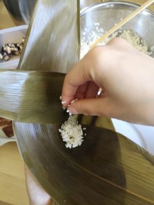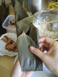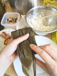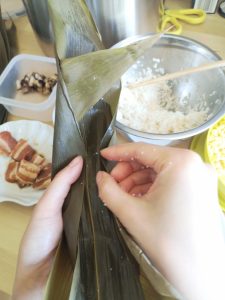 Then a rice dumpling is wrapped. Repeat for the rest.